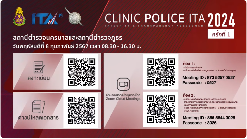 ด.ต.ชวการ เสนศิลา จนท.ดูแลระบบเว็บไซต์และคณะทำงาน ITA สภ.คลองหลวง ร่วมกิจกรรมกิจกรรมอบรม clinic ita 2024 (สถานีตํารวจ) ครั้งที่ 1 ผ่านระบบ Zoom meetting