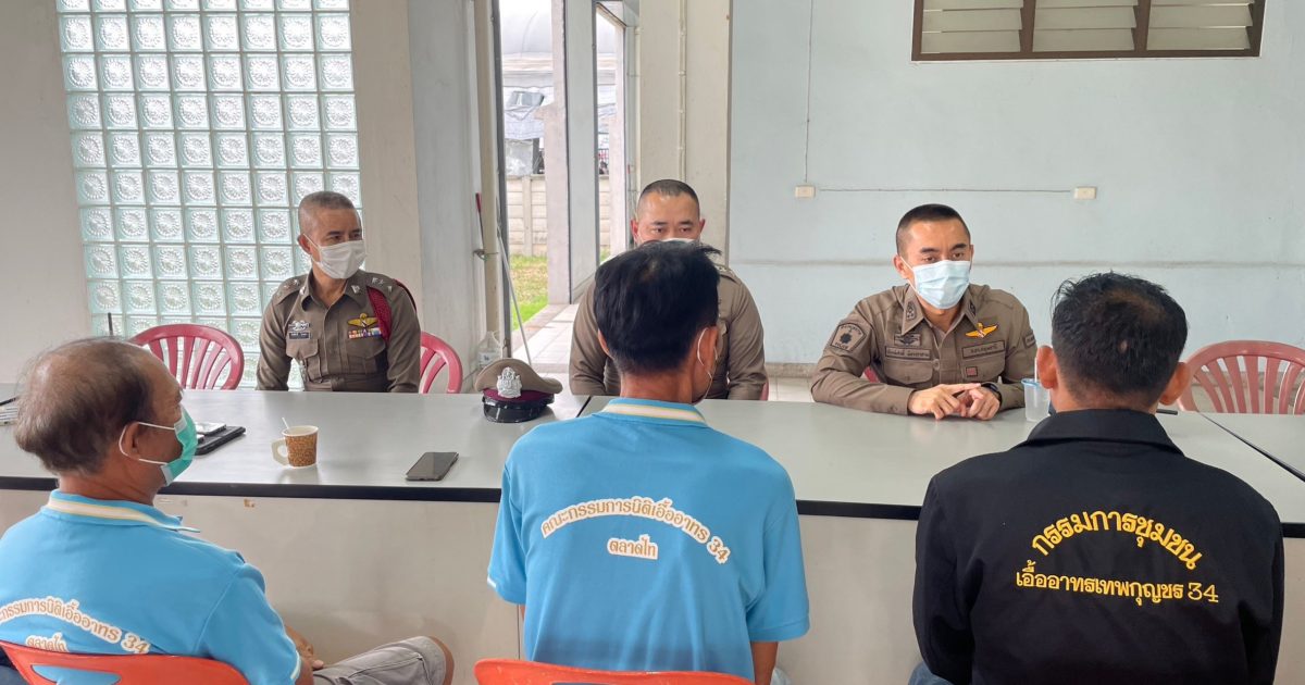 พร้อมกำลังเจ้าหน้าที่ตำรวจคลองหลวง ประชุมร่วมกับผู้นำชุมชนโครงการชุมชนยั่งยืน(ปักกลด) หมู่บ้านเอื้ออาทร เทพกุญชร 34 ต.คลองหนึ่ง อ.คลองหลวง ได้ประชาสัมพันธ์ทำความเข้าใจกับผู้นำชุมชน ดังนี้