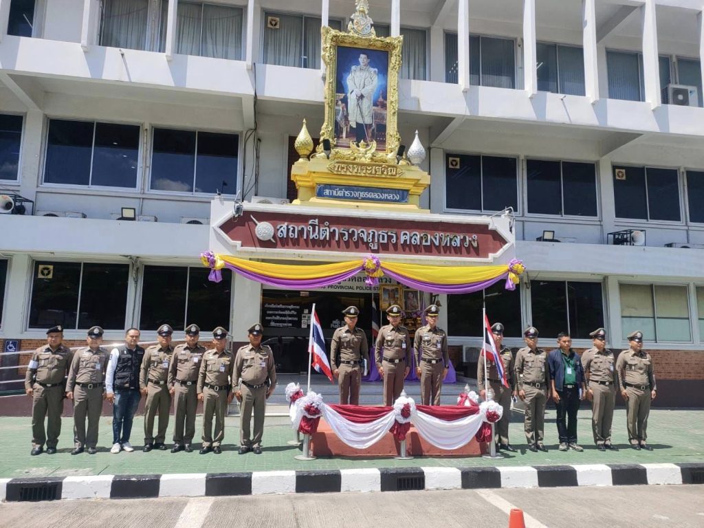 พร้อมข้าราชการตำรวจ สภ.คลองหลวงให้การต้อนรับ รอรับการตรวจ
