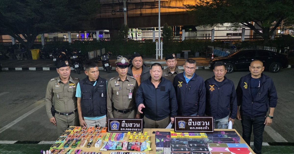 สถานที่จับกุม บริเวณร้าน Vape Zone ตลาดคลองสี่เมืองใหม่ ม.1 ต.คลองสี่ อ.คลองหลวง จ.ปทุมธานี