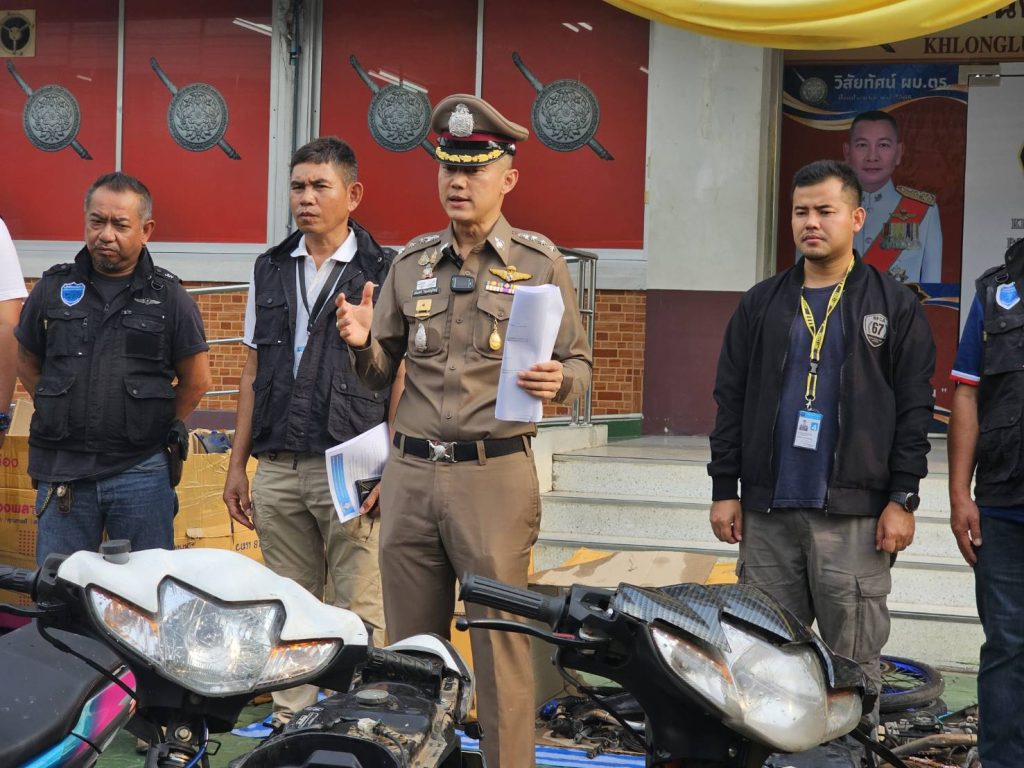 พฤติการณ์คือมีการรับซื้อรถจักรยานยนต์ที่ถูกโจรกรรม นำมาชำแหละเป็นชิ้นส่วน บรรจุกล่อง และจัดเตรียมส่งออกไปยังประเทศลาว โดยชุดจับกุมสามารถตรวจยึดโครงรถ เครื่องยนต์ และอะไหล่จำนวนมากได้จากบ้านพักในพื้นที่ ม.13 ต.คลองหนึ่ง อ.คลองหลวง จ.ปทุมธานี ผู้ต้องหาให้การรับสารภาพว่า จะรับซื้อรถจักรยานยนต์ที่ลักทรัพย์มามาชำแหละและใส่กล่องกระดาษก่อนจะขนย้ายขึ้นรถไปส่งยังชายแดนประเทศลาว โดยที่ผ่านมาผู้ต้องหาเคยส่งอะไหล่ไปยังโกดังที่ จ.มุกดาหารมาแล้วหลายครั้ง