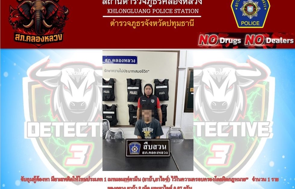 🏡สถานที่จับกุม บริเวณห้องเช่าไม่ทราบชื่อ ภายในตลาดไท ม.9 ต.คลองหนึ่ง อ.คลองหลวง จ.ปทุมธานี