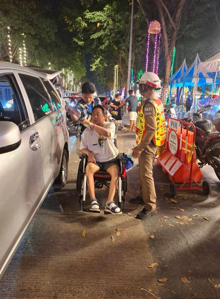 วันที่ 20 มี.ค.68 เวลาประมาณ 19.30 น. ขณะที่ ด.ต.สมคิด ขานกระโทก เจ้าพนักงานจราจร สภ.คลองหลวง ปฏิบัติหน้าที่อำนวยการจราจรให้กับประชาชนที่เดินทางมาเที่ยวงานธรรมศาสตร์แฟร์ ที่ ม.ธรรมศาสตร์ศูนย์รังสิต ได้มีประชาชนที่มาเที่ยวงานนั่งวีลแชร์มาขอความช่วยเหลือ โดยแจ้งว่าได้มาพบหมอตามนัดที่ รพ.ธรรมศาสตร์ เสร็จแล้วจึงได้นั่งรถวีลแชร์เที่ยวชมงานธรรมศาสตร์แฟร์ และกำลังจะกลับบ้าน โดยกำลังโทรเรียกให้คนขับรถมารับ พอดีเห็นพี่ตำรวจยืนโบกรถอยู่จึงมาขอความช่วยเหลือให้ยืนรอช่วยอำนวยความสะดวกให้และช่วยอุ้มพยุงขึ้นรถช่วงที่รถมาถึง ด.ต.สมคิดฯ จึงได้ให้ความช่วยเหลือด้วยความเต็มใจ สมกับเป็นผู้พิทักษ์รับใช้ประชาชน ขอชื่นชมครับเป็นภาพที่น่าประทับใจ