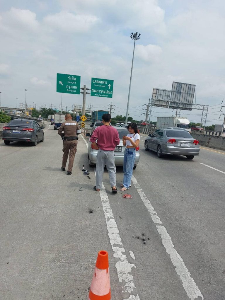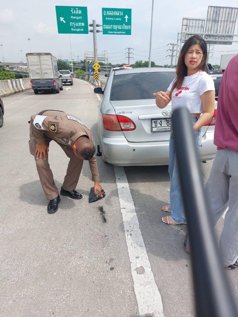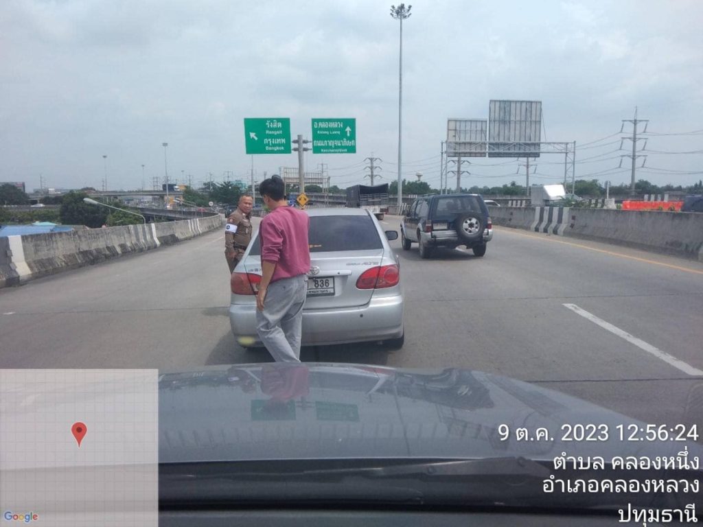 วันนี้ 9 ต.ค.66 เวลาประมาณ 12.56 น. ขณะที่ ร.ต.อ.สุระพล วงศ์วันดี และ ด.ต.อภิรม ต่างประโคน เจ้าพนักงานจราจร สภ.คลองหลวง ออกตรวจสภาพการจราจรในพื้นที่มาถึงบริเวณบนสะพานต่างระดับคลองหลวง ได้พบเหตุประชาชนผู้ใช้เส้นทางได้รับความเดือดร้อนโดยรถยนต์ที่ขับขี่มาเกิดยางระเบิด จึงรีบเข้าให้การช่วยเหลืออำนวยการจราจรและช่วยเหลือในการเปลี่ยนยางอะไหล่ จนสามารถขับขี่ต่อไปได้อย่างปลอดภัย