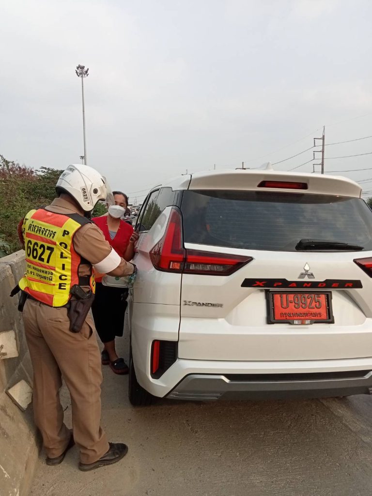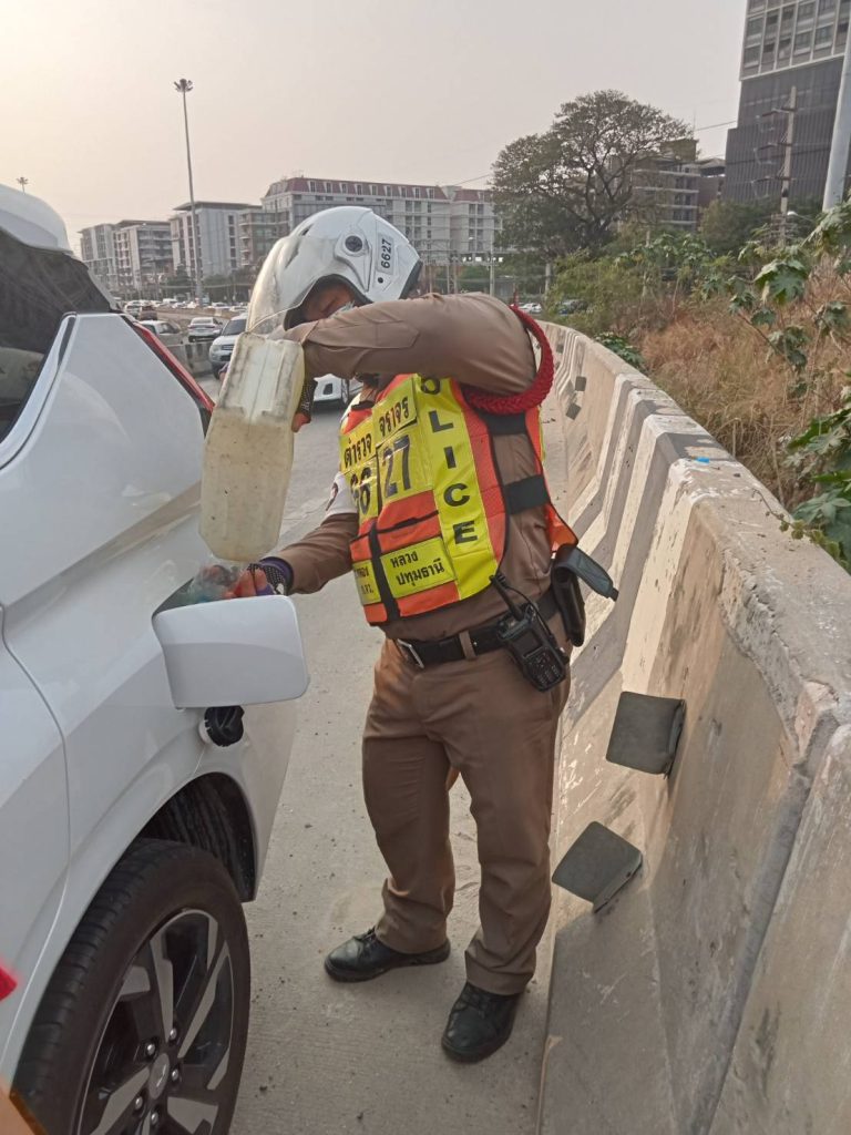 วันนี้ 11 มี.ค.67 เวลาประมาณ 17.20 น. ขณะที่ ร.ต.ต.สมชัย เเสนบุดดา เจ้าพนักงานจราจร สภ.คลองหลวง อำนวยการจราจรในชั่วโมงเร่งด่วนช่วงเย็น ได้พบเหตุประชาชนผู้ใช้เส้นทางได้รับความเดือดร้อนโดยรถยนต์ที่ขับขี่มาเกิดขัดข้องน้ำมันเชื้อเพลิงหมด จอดเสียกีดขวางการจราจรอยู่บนสะพานต่างระดับคลองหลวง จึงรีบเข้าให้การช่วยเหลืออำนวยการจราจรและช่วยไปซื้อน้ำมันเชื้อเพลิงมาเติมให้จนสามารถขับขี่ต่อไปได้อย่างปลอดภัย