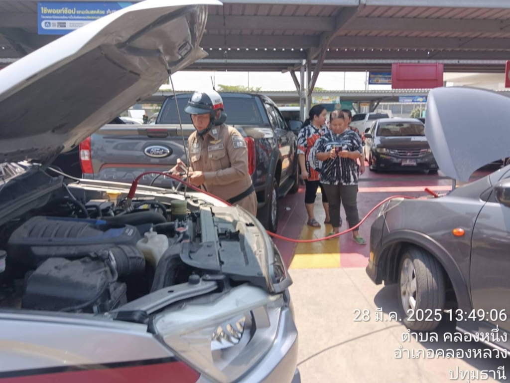 วันนี้ 28 มี.ค.68 เวลาประมาณ 13.45 น. ในขณะที่ ร.ต.อ.ณัฐวัฒน์ ทักษิณ ทักษิณ ร้อยเวรจราจรและ ร.ต.ด.โดม ฤทธิ์เดช เจ้าพนักงานจราจร สภ. คลองหลวง ออกตรวจป้องกันเหตุธนาคารและร้านค้าทองในห้างโลตัสสาขาคลองหลวง ได้พบเหตุประชาชนผู้ใช้รถได้รับความเดือดร้อนโดยรถยนต์ที่จอดอยู่ลานจอดรถเกิดขัดข้องระบบแบตเตอรี่ไม่สามารถขับขี่ ได้จึงรีบเข้าให้การช่วยเหลือ พ่วงชาร์จแบตเตอรี่ให้จนสามารถขับขี่ต่อไปได้อย่างปลอดภัย