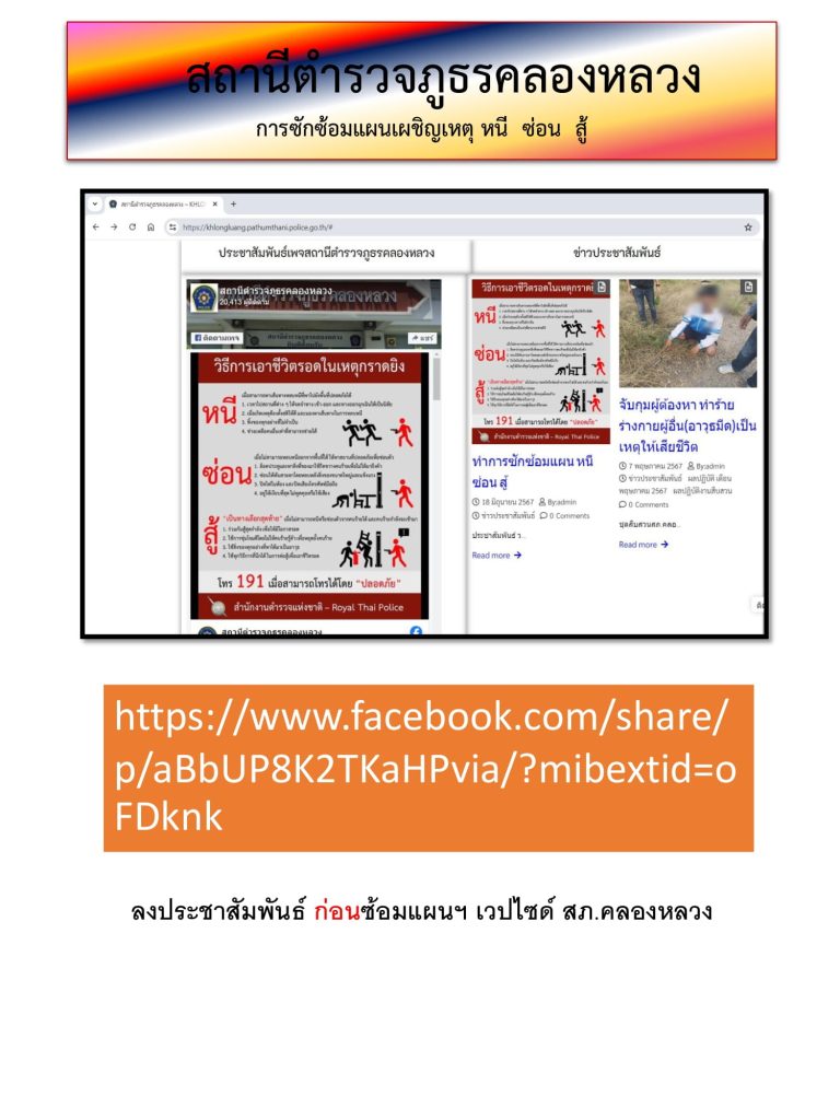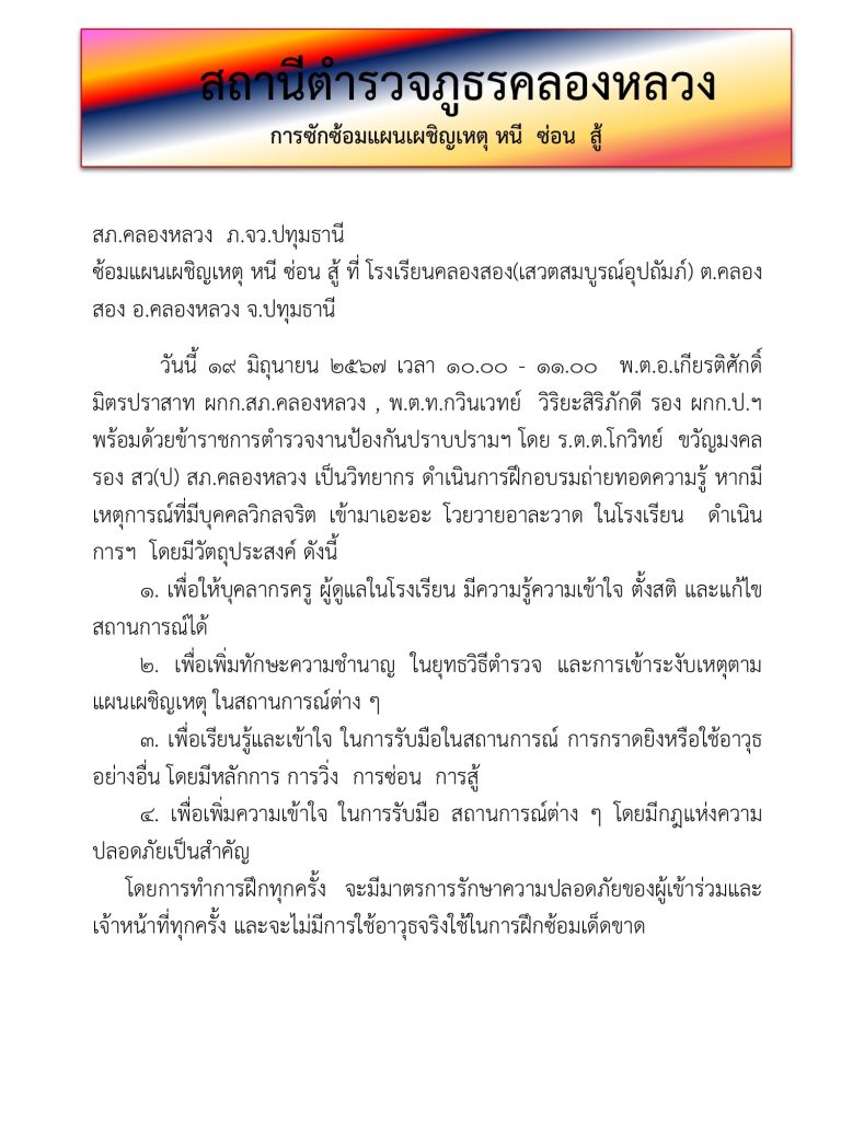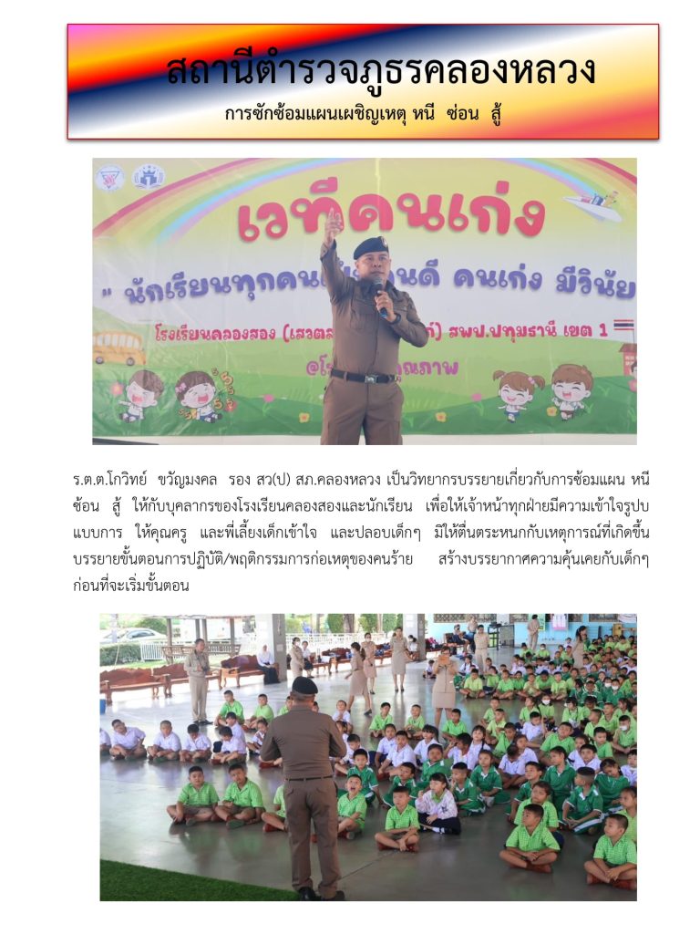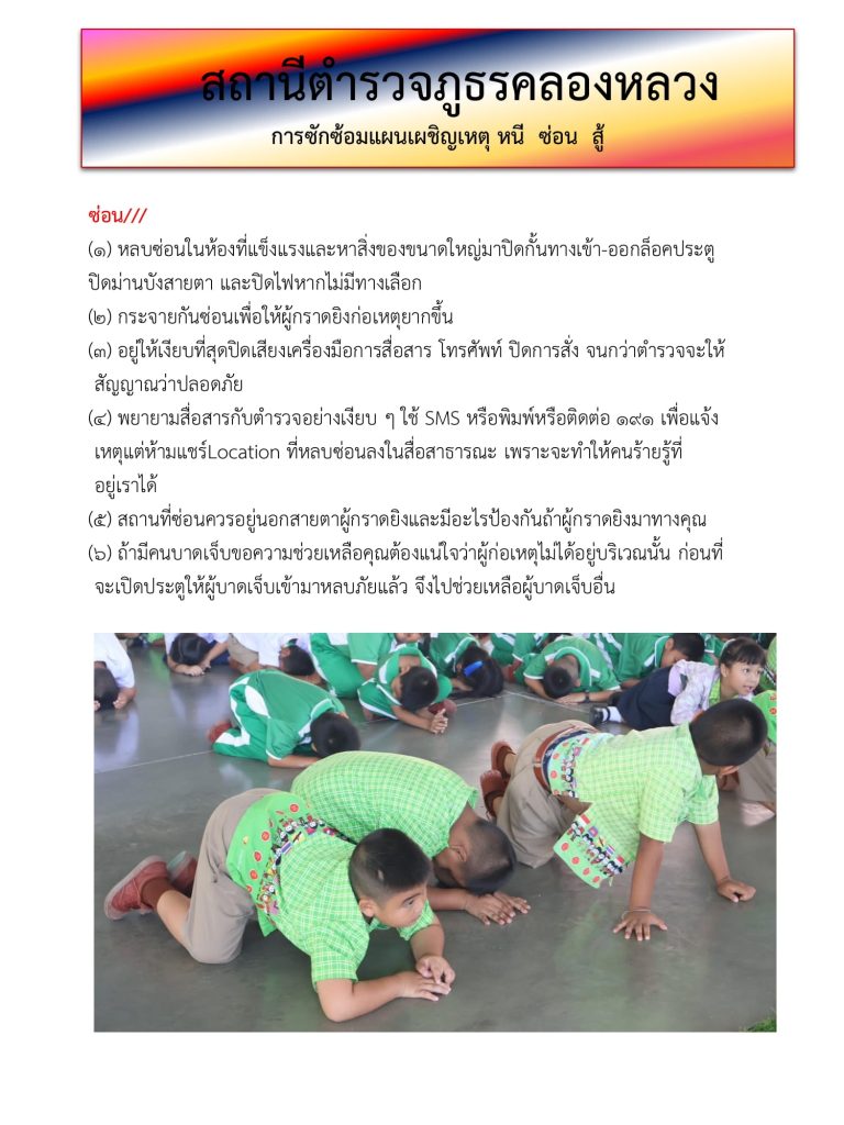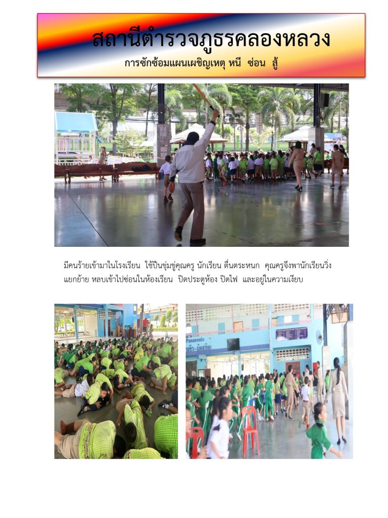 ซ้อมแผนเผชิญเหตุ หนี ซ่อน สู้ ที่ โรงเรียนคลองสอง(เสวตสมบูรณ์อุปถัมภ์) ต.คลองสอง อ.คลองหลวง จ.ปทุมธานี