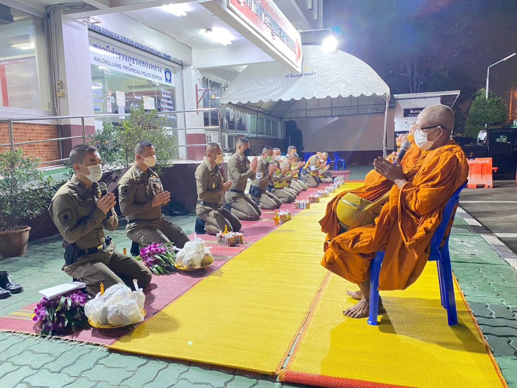 พ.ต.อ.เกียรติศักดิ์ มิตรปราสาท ผกก.สภ.คลองหลวง จัดโครงการทำบุญตักบาตร ข้าวสาร อาหารแห้ง พระภิกษุสงฆ์ จำนวน 5 รูป ประจำสัปดาห์ ครั้งที่ 54 เพื่อขัดเกลาจิตใจให้เป้นคนมมี คุณธรรม จริยธรรม ซื่อสัตย์ สุจริต ไม่ทุจริตคอรัปชั่น