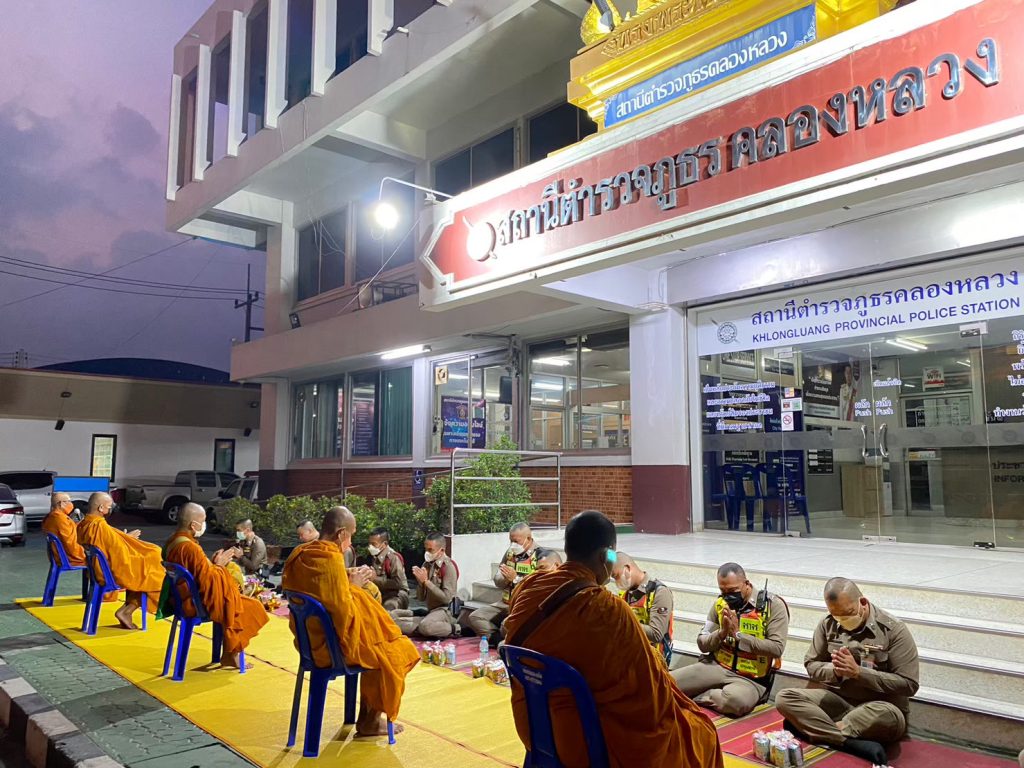 พ.ต.อ.เกียรติศักดิ์ มิตรปราสาท ผกก.สภ.คลองหลวง จัดโครงการทำบุญตักบาตร ข้าวสาร อาหารแห้ง พระภิกษุสงฆ์ จำนวน 5 รูป ประจำสัปดาห์ ครั้งที่ 59 เพื่อขัดเกลาจิตใจให้เป้นคนมมี คุณธรรม จริยธรรม ซื่อสัตย์ สุจริต ไม่ทุจริตคอรัปชั่น