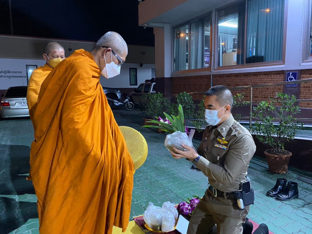 พ.ต.อ.เกียรติศักดิ์ มิตรปราสาท ผกก.สภ.คลองหลวง จัดโครงการทำบุญตักบาตร ข้าวสาร อาหารแห้ง พระภิกษุสงฆ์ จำนวน 5 รูป ประจำสัปดาห์ ครั้งที่ 51 เพื่อขัดเกลาจิตใจให้เป็นบุคคลที่มีคุณธรรมจริยธรรม