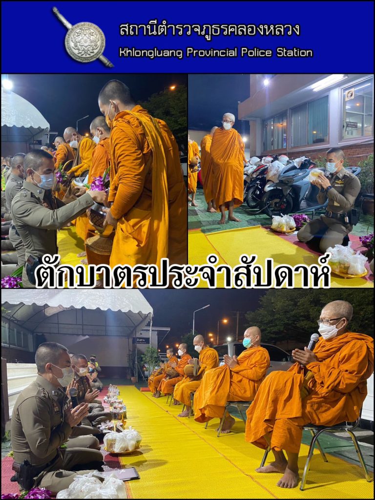 พร้อมตร.สภ.คลองหลวง ร่วมทำบุญตักบาตร ข้าวสาร อาหารแห้ง