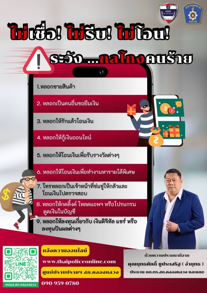 ตำรวจจับมือกต.ตร. ให้ความรู้ปชช. สภ.คลองหลวง ครองแชมป์คดีโกงออนไลน์