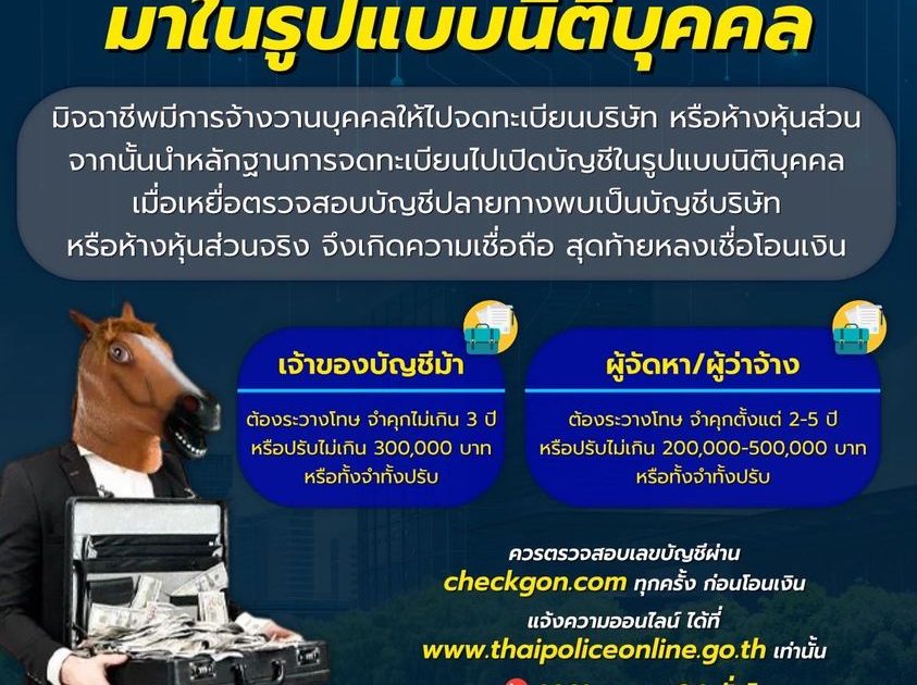 เตือนภัย กลโกงบัญชีม้าแบบใหม่มาในรูปแบบนิติบุคคล
