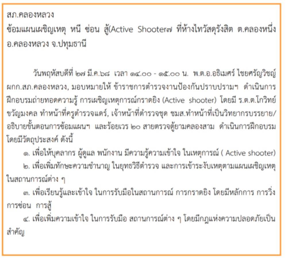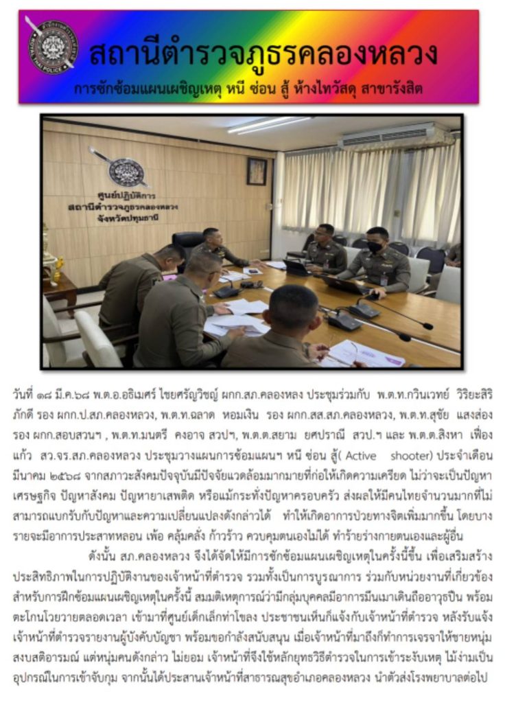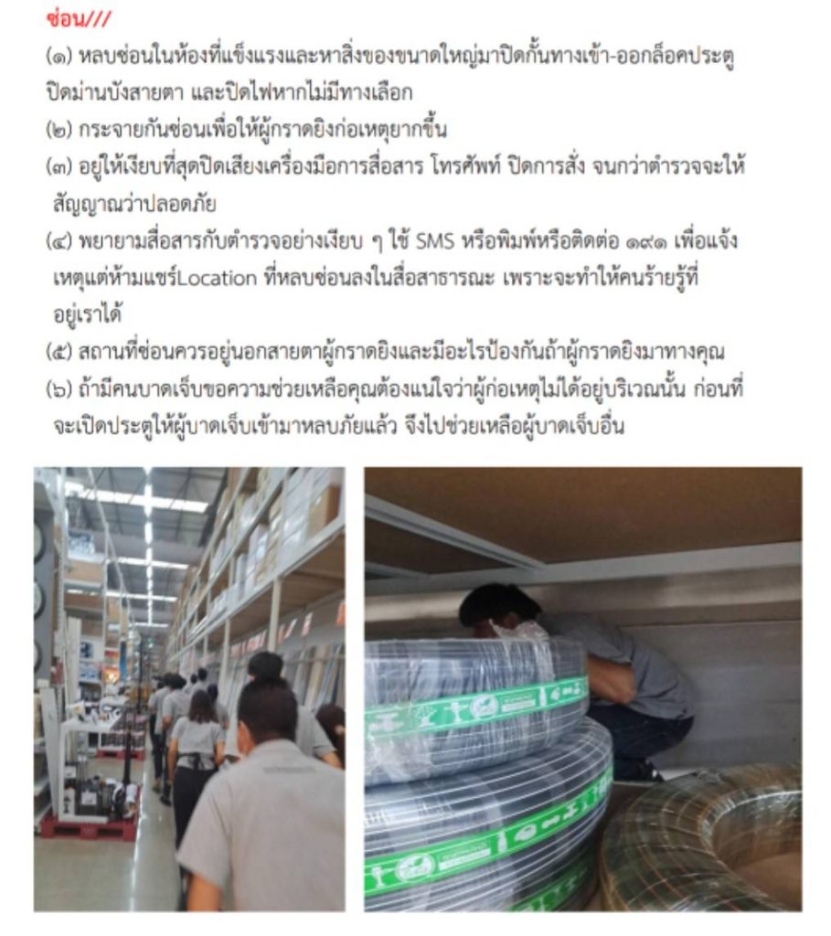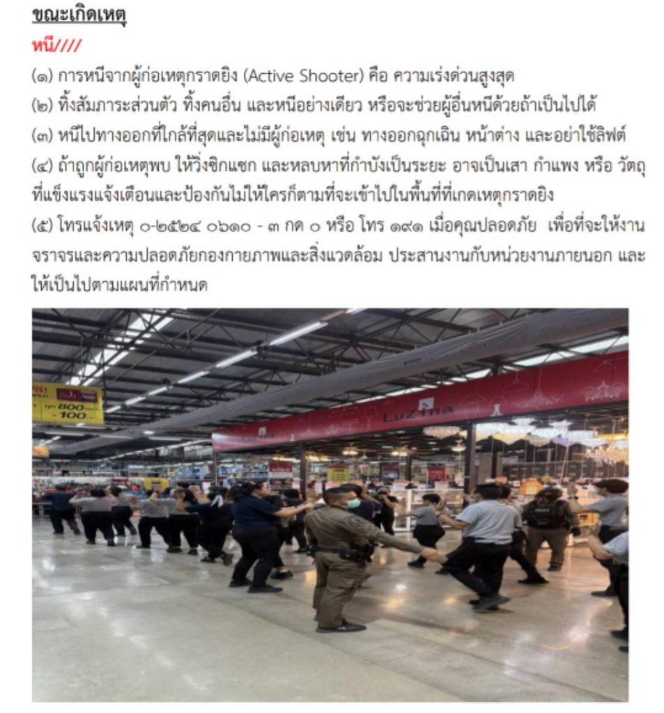 “หนี-ซ่อน-สู้” (Active Shooter) สร้างทักษะเอาตัวรอดเหตุกราดยิงณ บ. ไทวัสดุ รังสิต