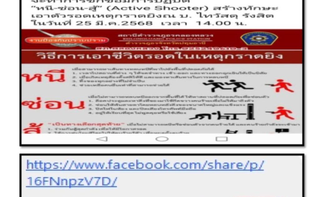 “หนี-ซ่อน-สู้” (Active Shooter) สร้างทักษะเอาตัวรอดเหตุกราดยิงณ บ. ไทวัสดุ รังสิต