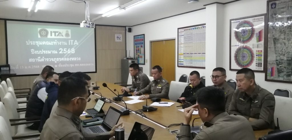 วันที่ 23 มกราคม พ.ศ 2567 เวลา 09.00 น. พ.ต.อ.เกียรติศักดิ์ มิตรปราสาท ผกก.สภ.คลองหลวง พ.ต.ท.ฉลาด หอมเงิน รอง ผกก.สส.สภ.คลองหลวง พ.ต.ท.สุชัย แสงส่อง รอง ผกก.สอบสวน.สภ.คลองหลวง พ.ต.ท.กวินเวทย์ วิริยะสิริภักดี รอง ผกก.ป.สภ.คลองหลวง พ.ต.ท.สิทธิศักดิ์ เตมียศิลปิน สว.อก.สภ.คลองหลวง พ.ต.ท.สิงหา เฟื่องแก้ว สว.จร.สภ.คลองหลวง พ.ต.ท.วีระ สุขชนะ สว.สส.สภ.คลองหลวง พ.ต.ท.สิรภพ บัวหลวง สว.สส.สภ.คลองหลวง พ.ต.ต.มนตรี คงอาจ สวป.สภ.คลองหลวง และเจ้าหน้าที่ผู้เกี่ยวข้อง ประชุมขับเคลื่อน กิจกรรม ITA 2568 ณ ห้องประชุมสภ.คลองหลวง