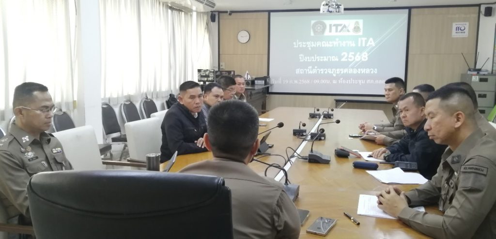 วันที่ 10 กุมภาพันธ์ พ.ศ 2567 เวลา 09.00 น. พ.ต.อ.เกียรติศักดิ์ มิตรปราสาท ผกก.สภ.คลองหลวง พ.ต.ท.ฉลาด หอมเงิน รอง ผกก.สส.สภ.คลองหลวง พ.ต.ท.สุชัย แสงส่อง รอง ผกก.สอบสวน.สภ.คลองหลวง พ.ต.ท.กวินเวทย์ วิริยะสิริภักดี รอง ผกก.ป.สภ.คลองหลวง พ.ต.ท.สิทธิศักดิ์ เตมียศิลปิน สว.อก.สภ.คลองหลวง พ.ต.ท.สิงหา เฟื่องแก้ว สว.จร.สภ.คลองหลวง พ.ต.ท.วีระ สุขชนะ สว.สส.สภ.คลองหลวง พ.ต.ท.สิรภพ บัวหลวง สว.สส.สภ.คลองหลวง พ.ต.ต.มนตรี คงอาจ สวป.สภ.คลองหลวง และเจ้าหน้าที่ผู้เกี่ยวข้อง ประชุมขับเคลื่อน กิจกรรม ITA 2568 ณ ห้องประชุมสภ.คลองหลวง