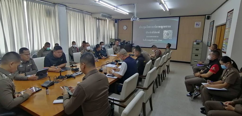 วันอังคารที่ 8 พ.ย.66 เวลา 08.30 น. พ.ต.อ.เกียรติศักดิ์ มิตรปราสาท ผกก.สภ.คลองหลวง ประชุมวิเคราะห์อาชญากรรมในพื้นที่รับผิดชอบประจำสัปดาห์ โดยมีหัวหน้าสายงานและจนท.ผู้เกี่ยวข้อง งานป้องกันปราบปราม งานสืบสวนและงานสอบสวน สภ.คลองหลวงร่วมประชุม ณ ห้องประชุมชั้น 3 สภ.คลองหลวง