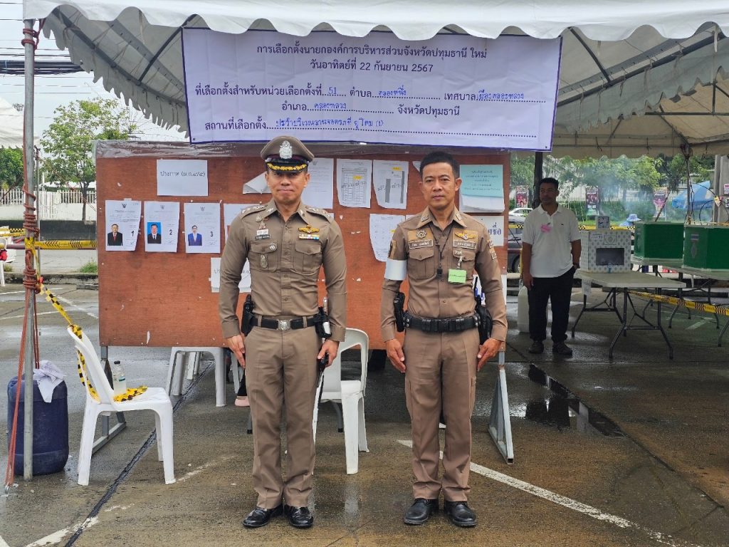 และเจ้าหน้าที่ตำรวจ สภ.คลองหลวง อบรมชี้แจงปล่อยแถวภารกิจรักษาความสงบเรียบร้อยและความปลอดภัยการเลือกตั้งนายกเทศมนตรีเมืองคลองหลวง ณ บริเวณหน้าที่ทำการสถานีตำรวจภูธรคลองหลวง - และออกตรวจความเรียบร้อยในพื้นที่เลือกตั้ง
