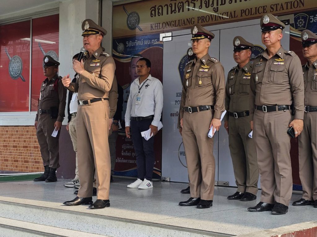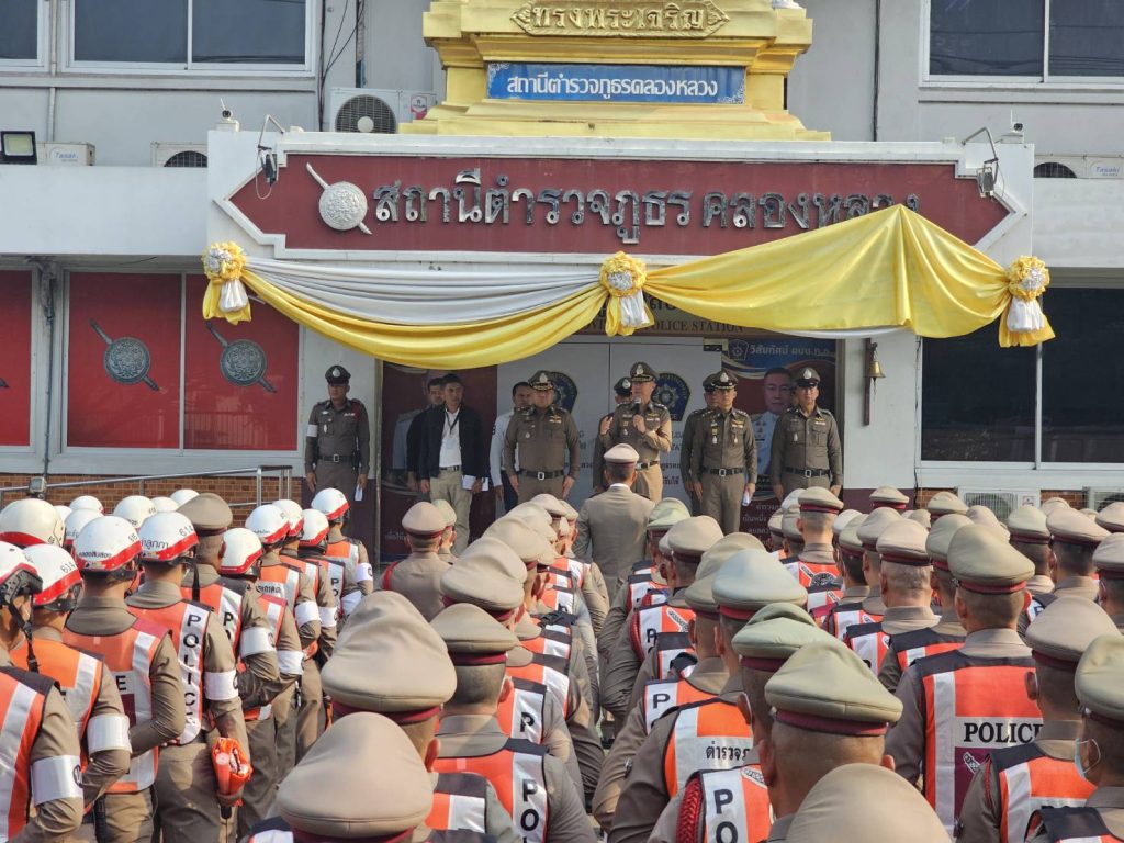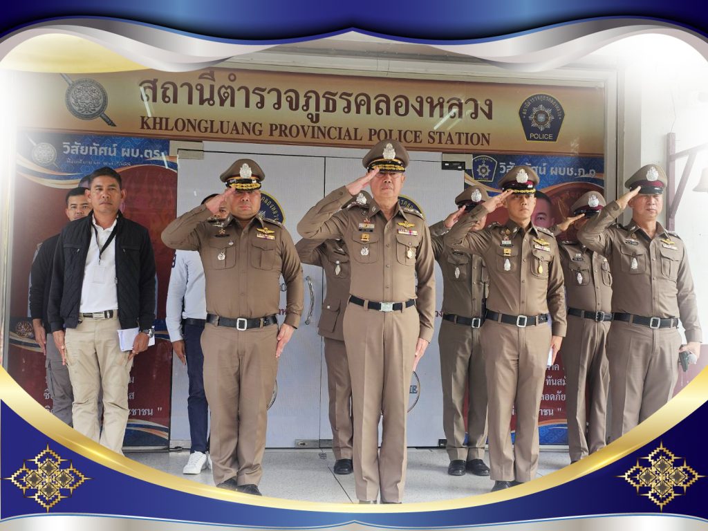 ตรวจสอบยอดกำลังพล การแต่งกาย เครื่องมือสื่อสาร และวัสดุอุปกรณ์ที่เกี่ยวข้อง อบรม ชี้แจง การปฏิบัติข้าราชการตำรวจ สภ.คลองหลวง และข้าราชการตำรวจช่วยราชการ จำนวน 543 นาย ณ หน้าที่ทำการสภ.คลองหลวง