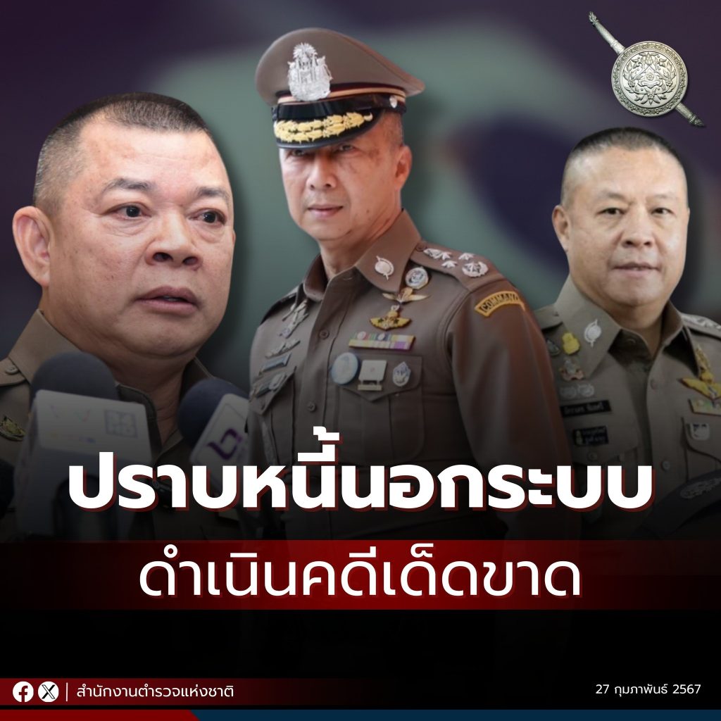 “สำหรับการปราบปรามเรื่องหนี้นอกระบบนั้น เนื่องจากเป็นวาระแห่งชาติ และเป็นนโยบายเร่งด่วนของ นายเศรษฐา ทวีสิน นายกรัฐมนตรี สำนักงานตำรวจแห่งชาติจึงได้เร่งรัดปราบปรามจับกุมเกี่ยวกับหนี้นอกระบบ มาอย่างต่อเนื่องโดยตลอด โดยที่ผ่านมารับแจ้งเบาะเรื่องหนี้นอกระบบ 142 เรื่อง มูลหนี้ 170,334,640 บาท ดำเนินการแล้วเสร็จ 127 เรื่อง คิดเป็นร้อยละ 89.44 จับกุมเรื่องหนี้นอกระบบ จำนวน 1,584 เรื่อง มูลหนี้ 58,557,712 บาท ดำเนินการแล้วเสร็จ 1,547 เรื่อง คิดเป็นร้อยละ 99.94