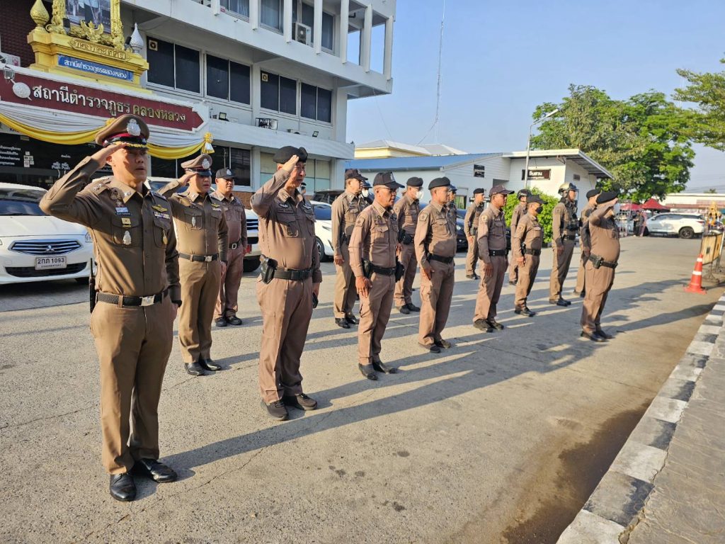◾️นำแถวข้าราชการตำรวจเคารพธงชาติ หน้า สภ.คลองหลวง และอบรมปล่อยแถวสายตรวจรถจักรยานยนต์ ชุดที่ 3 ผลัดที่ 2 เวลา 08.01- 16.00 น.