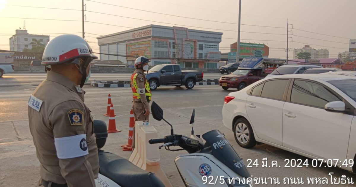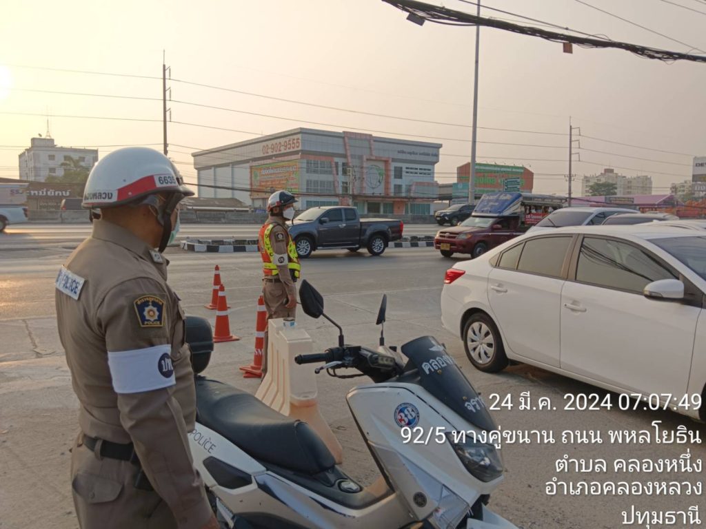 งานจราจรสภ.คลองหลวง อำนวยการจราจรศูนย์สอบ มหาวิทยาลัยธรรมศาสตร์ศูนย์ รังสิต