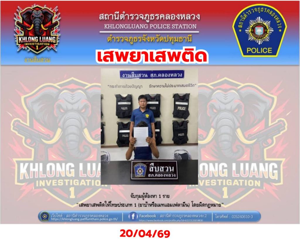 ผู้จับกุม นำโดย พ.ต.ท.ฉลาด หอมเงิน รอง ผกก.สส.สภ.คลองหลวง