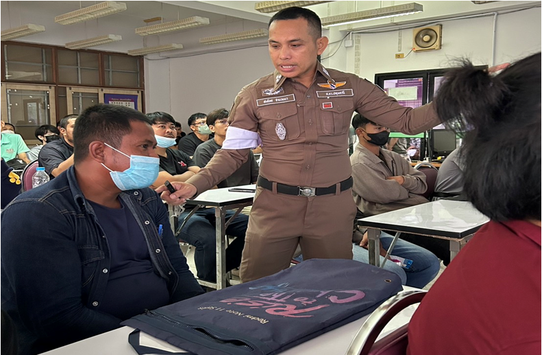 วันที่ 5 ก.พ.67 เวลา ๑๐.๐๐ – ๑๕.๐๐ น. พ.ต.ท.สิงหา เฟื่องแก้ว สว.จร.สภ.คลองหลวง ได้มอบหมายให้ ร.ต.อ. สมโภช จำนวนนา รอง สว.จร.สภ.คลองหลวง เป็นวิทยากร อบรมให้ความรู้ด้านการจราจร และรณรงค์ประชาสัมพันธ์ การขับขี่ปลอดภัย สวมหมวกนิรภัย ๑๐๐ เปอร์เซ็นต์ ให้กับประชาชนที่มาขอรับใบอนุญาตขับขี่รถ ณ สำนักงานขนส่งจังหวัดปทุมธานี สาขาคลองหลวง ต.คลองสี่ อ.คลองหลวง จ.ปทุมธานี ตามโครงการ “ขับขี่ปลอดภัย ให้ความรู้ผู้ขับขี่”ของสถานีตำรวจภูธรคลองหลวง