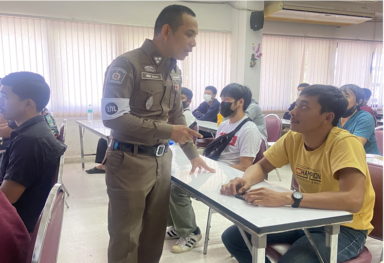 โครงการ “ขับขี่ปลอดภัย ให้ความรู้ผู้ขับขี่”วันที่ ๑๔ ธ.ค.๖๖ เวลา ๑๐.๐๐ – ๑๕.๐๐ น. พ.ต.อ.เกียรติศักดิ์มิตรปราสาท ผกก.สภ.คลองหลวง,พ.ต.ท.สิงหา เฟื่องแก้ว สว.จร.สภ.คลองหลวง ได้มอบหมายให้ ร.ต.อ. สมโภช จำนวนนา รอง สว.จร.สภ.คลองหลวงเป็นวิทยากร อบรมให้ความรู้ด้านการจราจร และรณรงค์ประชาสัมพันธ์ การขับขี่ปลอดภัย สวมหมวกนิรภัย ๑๐๐ เปอร์เซ็นต์ ให้กับประชาชนที่มาขอรับใบอนุญาตขับขี่รถ ณ สำนักงานขนส่งจังหวัดปทุมธานี สาขาคลองหลวง ต.คลองสี่ อ.คลองหลวง จ.ปทุมธานี ตามโครงการ“ขับขี่ปลอดภัย ให้ความรู้ผู้ขับขี่”ของสถานีตำรวจภูธรคลองหลวง
