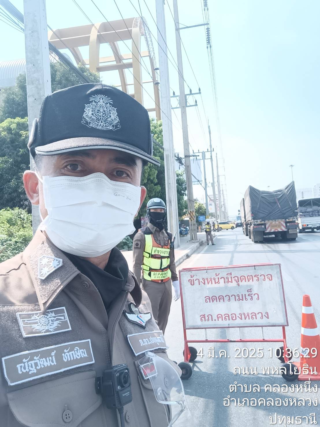วันที่ 6มี.ค.68เวลา 06.00น. พ.ต.ท.สิงหา เฟื่องแก้ว สว.จร.สภ.คลองหลวงร.ต.อ.กันตพัฒน์ ปัสสา รอง สว.จร.