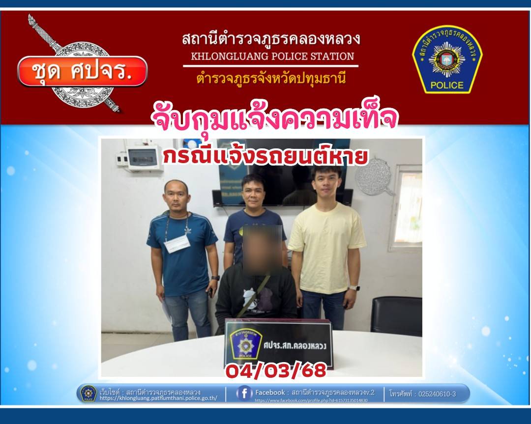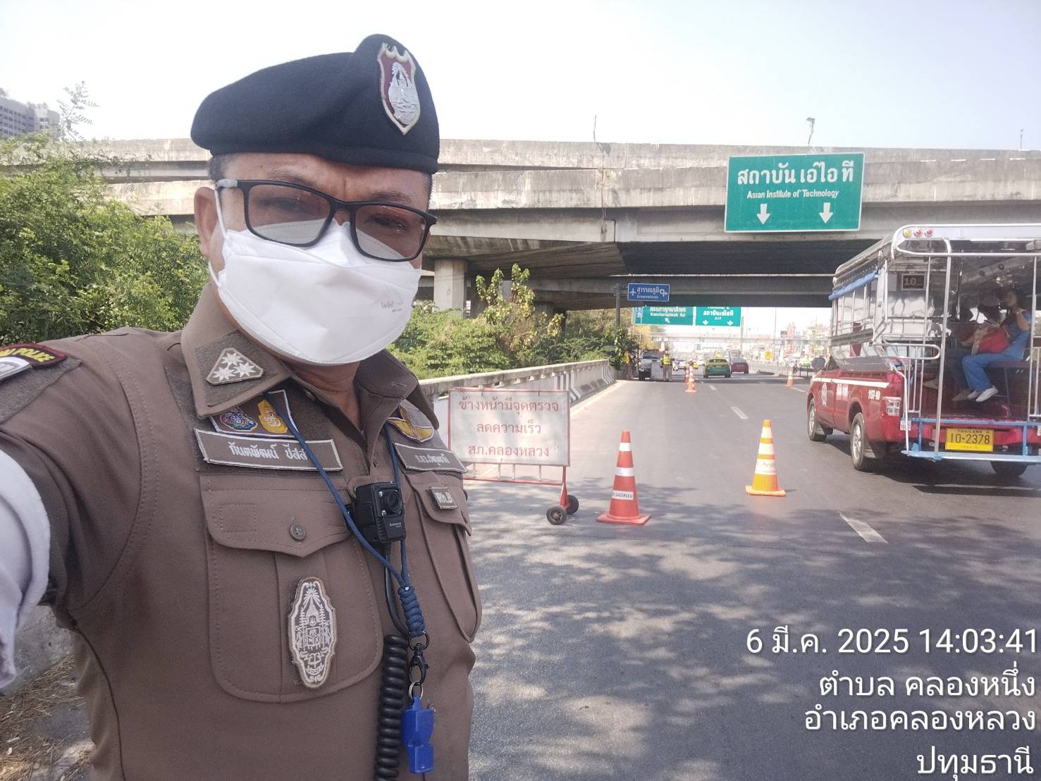 วันที่ 5 มีนาคม พ.ศ.2568เวลา 06 .00 น. พ.ต.ท.สิงหา เฟื่องแก้ว สว.จร.สภ.คลองหลวง, ร.ต.อ.สุระพล วงศ์วั