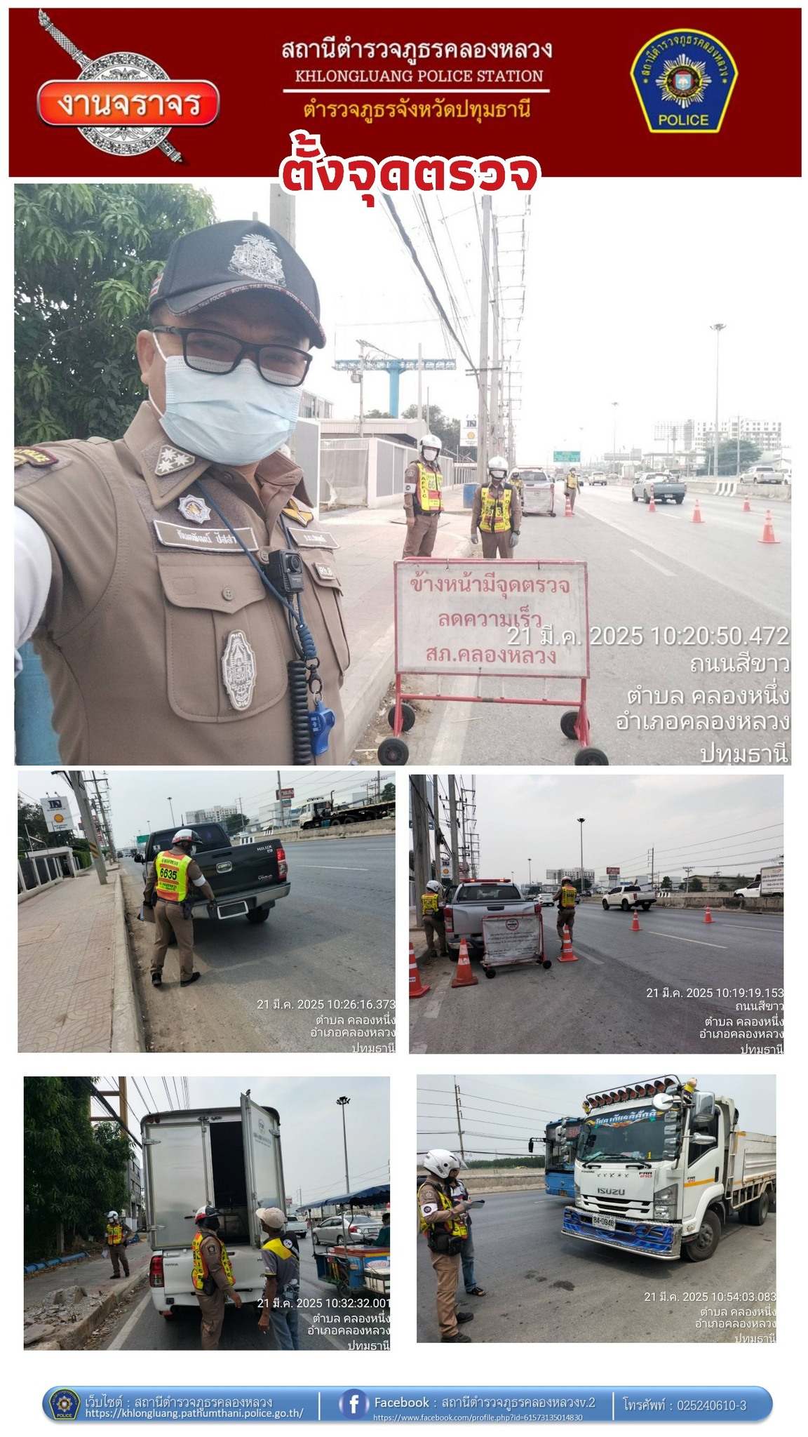สภ.คลองหลวง ภ.จว.ปทุมธานี วันที่ 21 มี.ค.68 เวลา17.00น. เจ้าพนักงานจราจร สภ.คลองหลวง ออกกวดขันจับกุม