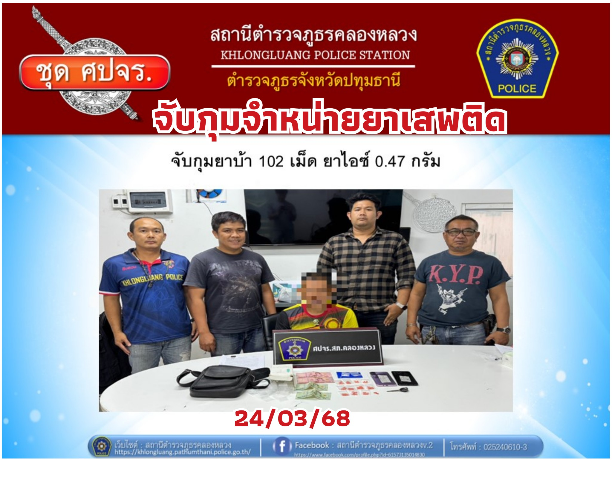 ภ.คลองหลวง ภ.จว.ปทุมธานี ศูนย์ปราบปรามการโจรกรรมรถยนต์ รถจักรยานยนต์ (ศปจร.) จับกุมยาเสพติด จำนวน 1