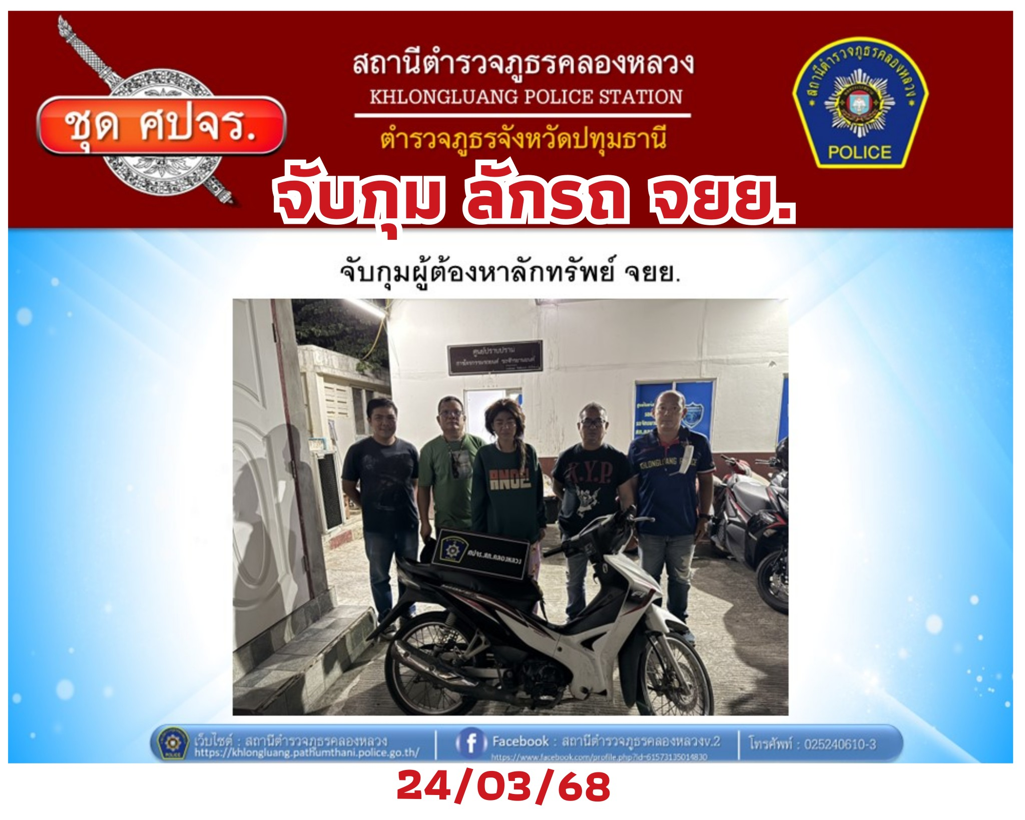 สภ.คลองหลวง ภ.จว.ปทุมธานี ศูนย์ปราบปรามการโจรกรรมรถยนต์ รถจักรยานยนต์ (ศปจร.) จับกุมลักทรัพย์ จยย. ว