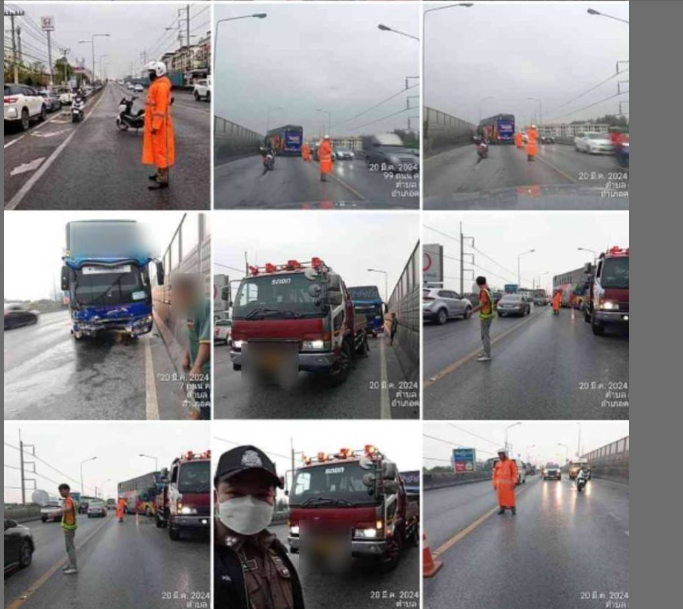 งานจราจาสภ.คลองหลวง ตรวจสอบอุบัติเหตุ บนสะพานข้ามทางแยกหน้าวัดธรรมกาย ถนนบางขัน-หนองเสือ ทำให้การจาจ