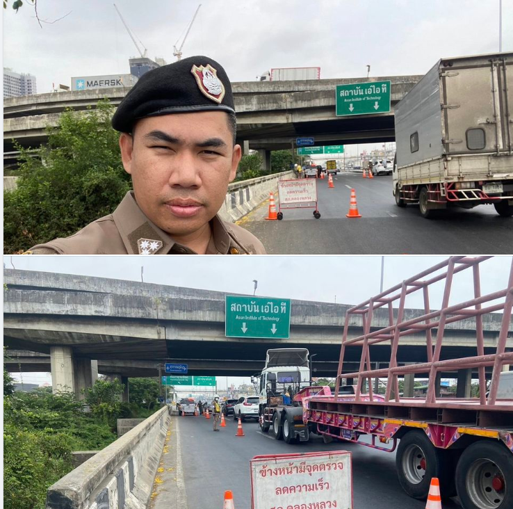 สภ.คลองหลวง ภ.จว.ปทุมธานี วันที่ 19 มี.ค.2567 งานจราจร สภ.คลองหลวง ดำเนินการตั้งจุด ตรวจกวดขันวินัยก