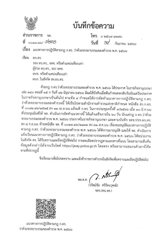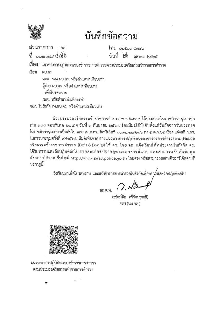แนวทางการการปฏิบัติตนของข้าราชการตำรวจตามประมวลจริยธรรมข้าราชการตำรวจ