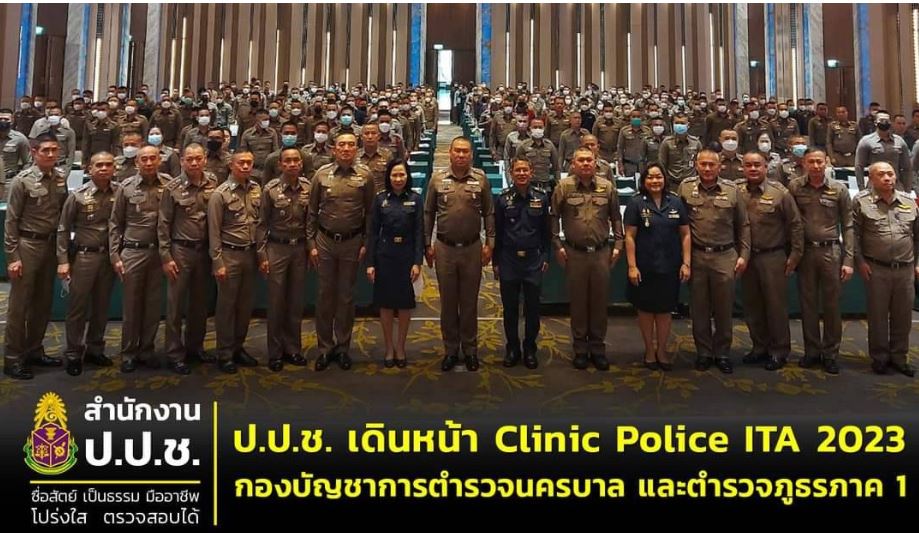 วันที่ 20 มีนาคม 2566 สำนักงาน ป.ป.ช. โดยสำนักประเมินคุณธรรมและความโปร่งใส จัดกิจกรรม Clinic Police ITA 2023 (กองบัญชาการตำรวจนครบาล และตำรวจภูธรภาค 1) โดยมี พล.ต.อ.วิสนุ ปราสาททองโอสถ จเรตำรวจแห่งชาติ เป็นประธานในพิธีเปิดกิจกรรมฯ และ นายทวิชาติ นิลกาญจน์ ผู้ช่วยเลขาธิการคณะกรรมการ ป.ป.ช. เป็นผู้กล่าวรายงาน ณ โรงแรมรามาการ์เด็นส์ กรุงเทพ เขตหลักสี่ กรุงเทพมหานคร